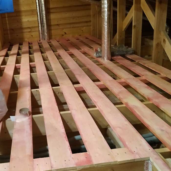 При необходимости на чердаке монтируются полы из доски с зазорами 100-200 мм
